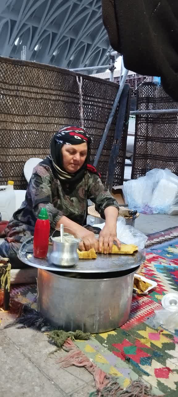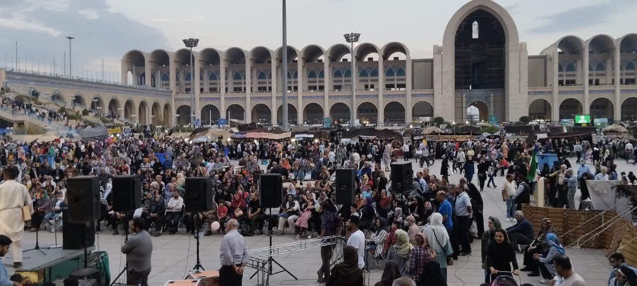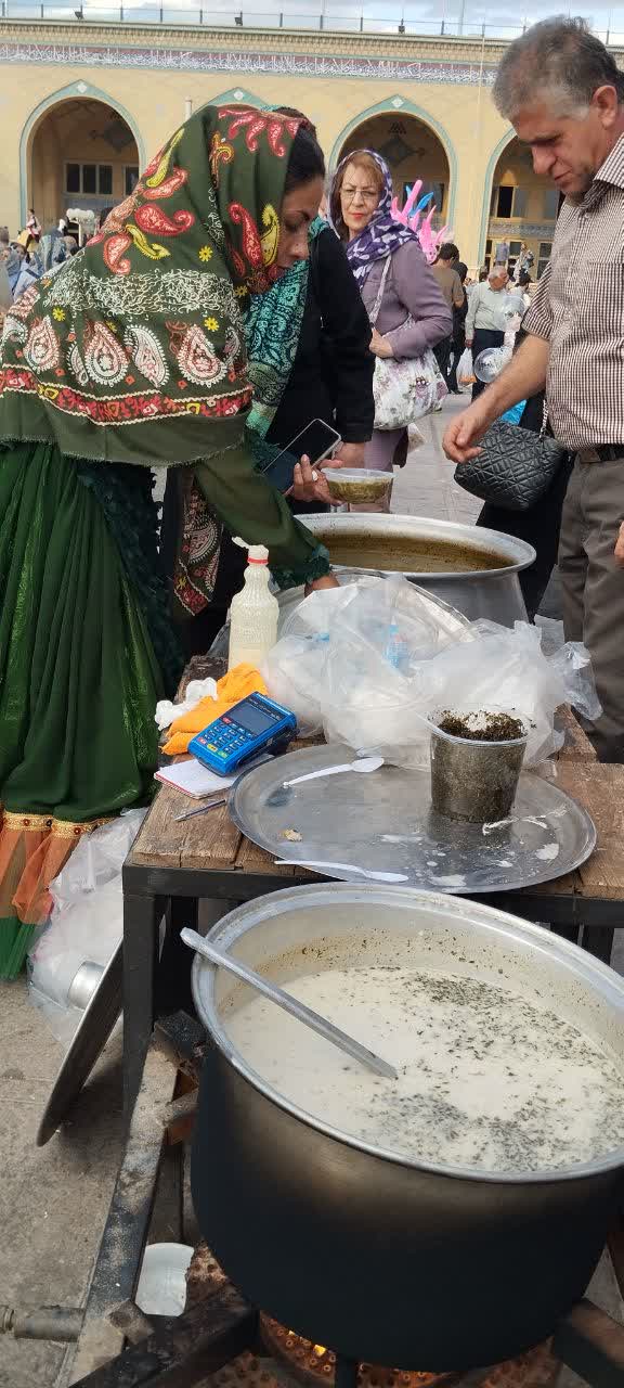 در حیاط مصلای کافی بود شما قدمی بزنید و کل ایران را کنار هم همچون طیفی از مداد های رنگی و در چادرها و غرفه های فروش ببینید، بساط چای اتشی به راه بود و با خوردن آن چای آتشی دیشلمه حتی با لیوان کاغذی خستگی رو از تن جدا میکرد دود کباب تبریزی ، عطر برنج عشایر شیرازی ، بوی نان تنوری لرستان و ترکمن ها و شاهسون ها ، آش دوغ اردبیل ...و انواع خوراکی ها و سوغات هوش از سر آدمی میبرد....